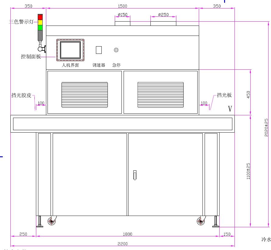 | 一、UV光源:LED*2組、汞燈/镓燈10kw*3組 | 二、UV汞燈總長:950mm、弧長850mm |